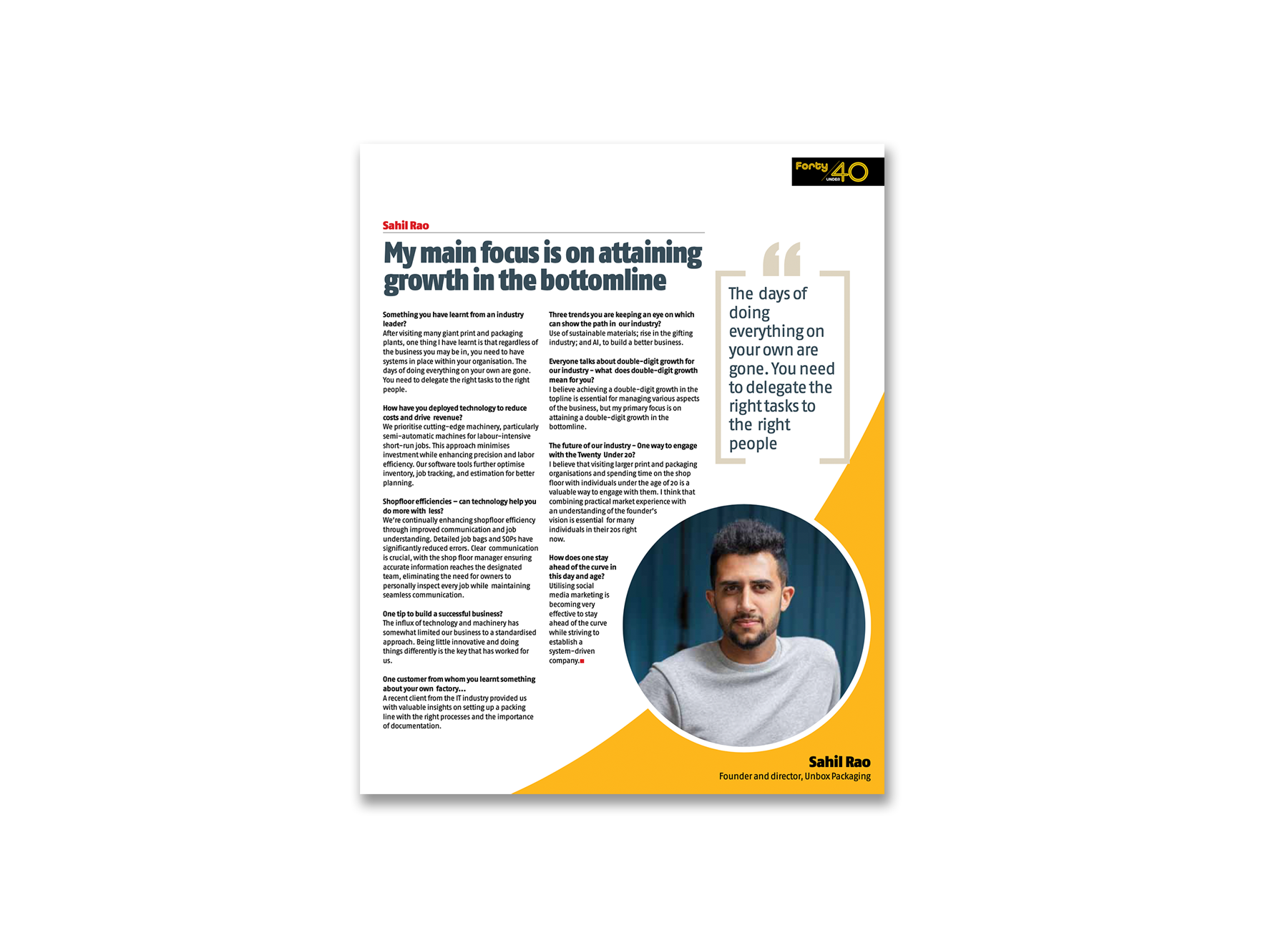 Our founder, Sahil Rao getting featured as 40 under 40.